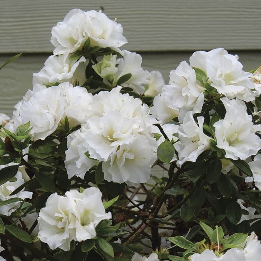 A reblooming azalea, double white blooms not for mere weeks but for months. Rhododendron Perfecto Mundo® Double White Azalea blooms on old wood in spring, and later, after a brief rest, it blooms on new wood in midsummer, continuing until frost. A light pruning after the spring bloom will encourage new growth and new blooms. The large double flowers, so bright and beautiful, are papery and pure whitepretty perfect.