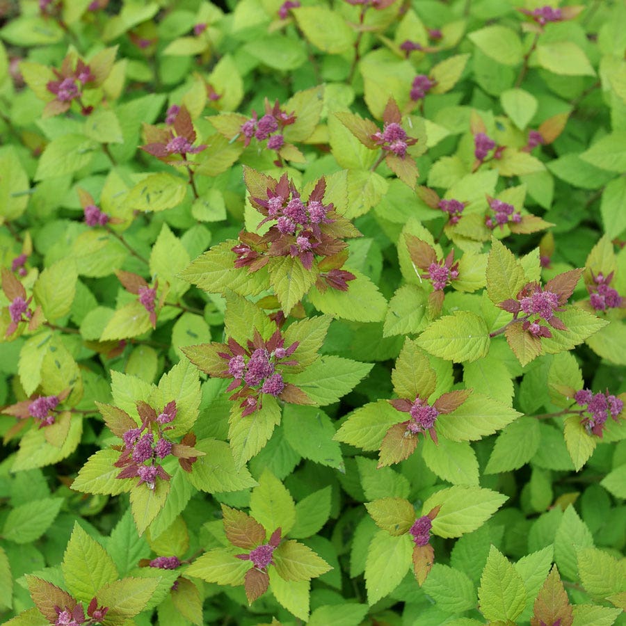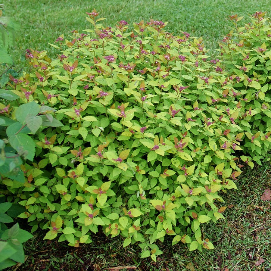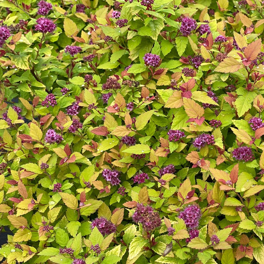 A Proven Winners® ColorChoice® Flowering Shrubs variety, Spiraea Double Play® Dolly™ is a deciduous perennial shrub offering 3 seasons of interest, blooming late spring through summer. A unique color combination for spirea, purple flowers "pop" against bright yellow foliage. The foliage emerges with a flush of orange red in early spring before being smothered in flat-topped clusters of tiny flowers in late spring. The flowers have a slight, sweet fragrance and sustain pollinators, including butterflies and hummingbirds.