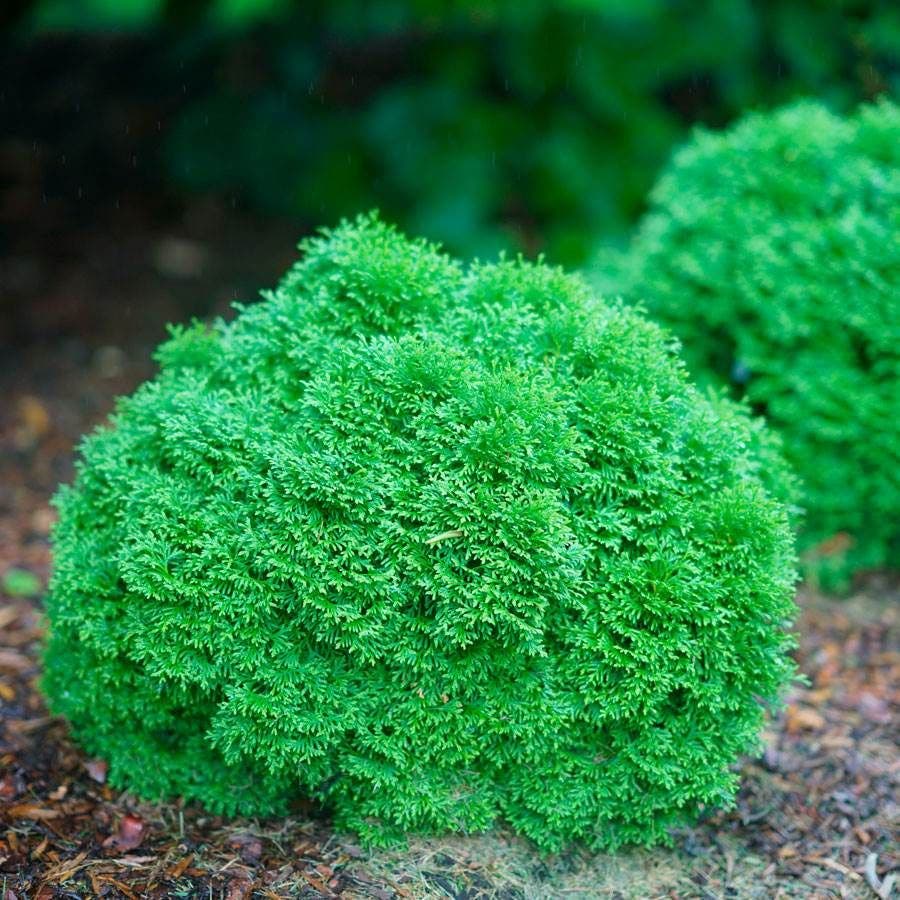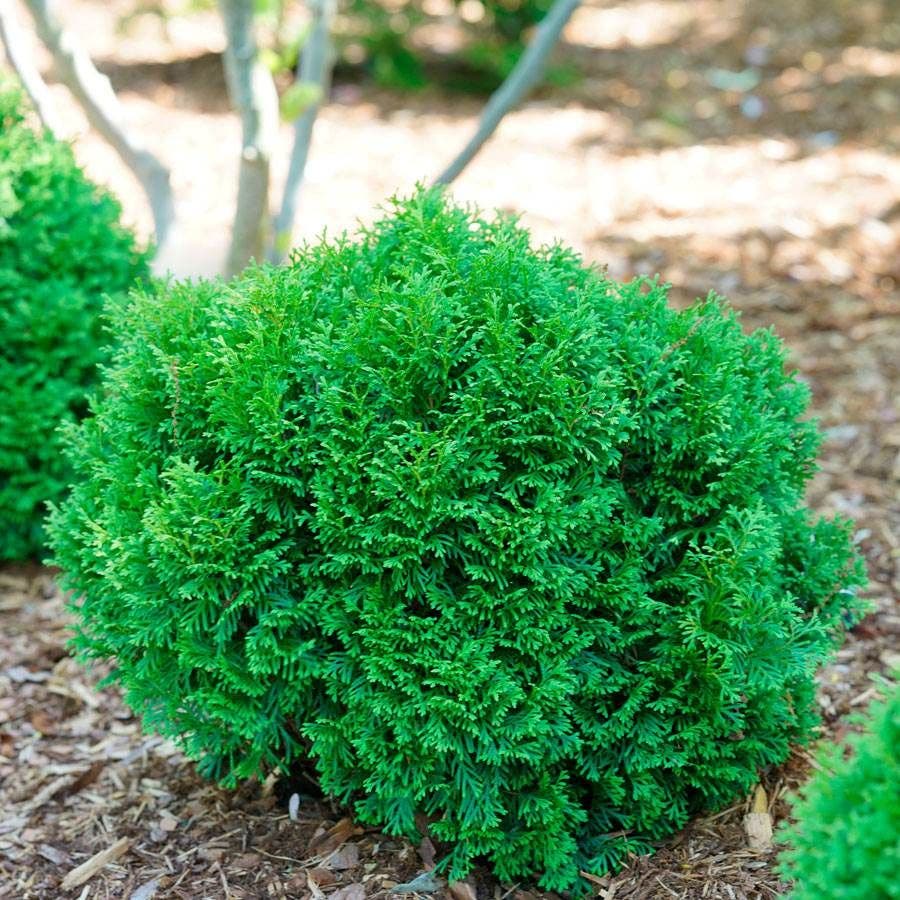 A dwarf thuja variety, Thuja Tater Tot® is an evergreen shrub offering year-round interest. A perfect garden accessory, the plant grows as an appealing globe of dense, finely textured, bright green foliage. This bubbly bush requires little shaping to maintain its natural spherical form.