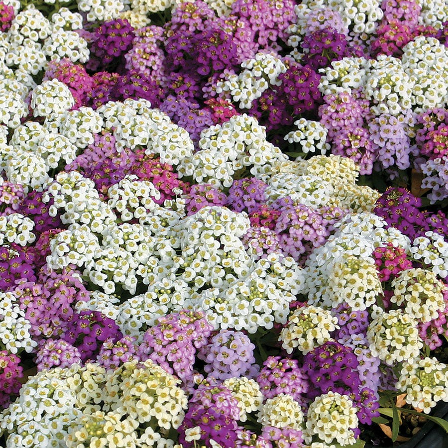 Wonderland® Mix Sweet Alyssum is a charming, low-growing annual that brings soft color, sweet fragrance, and pollinator-friendly blooms to your garden from spring through fall. The mix features delicate clusters of white, pink, lavender, and violet flowers, creating a carpet of color that's perfect for borders, containers, hanging baskets, rock gardens, and walkway edges.