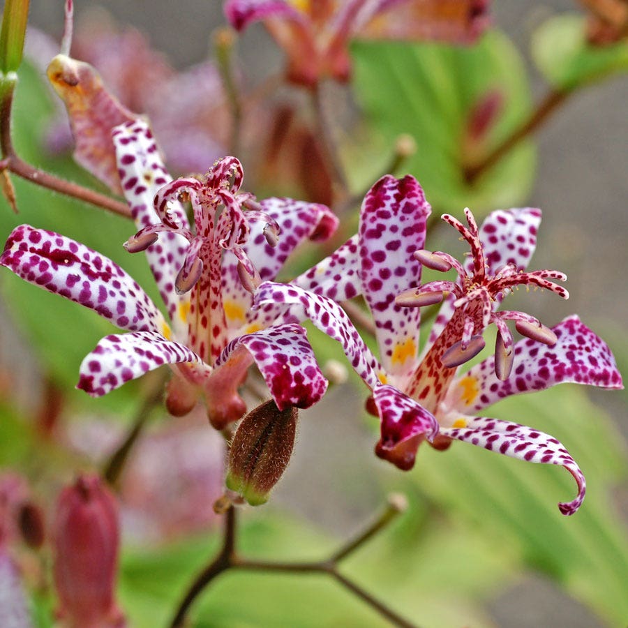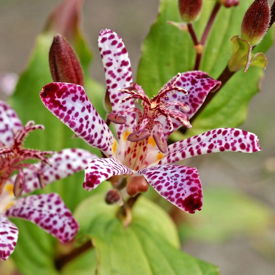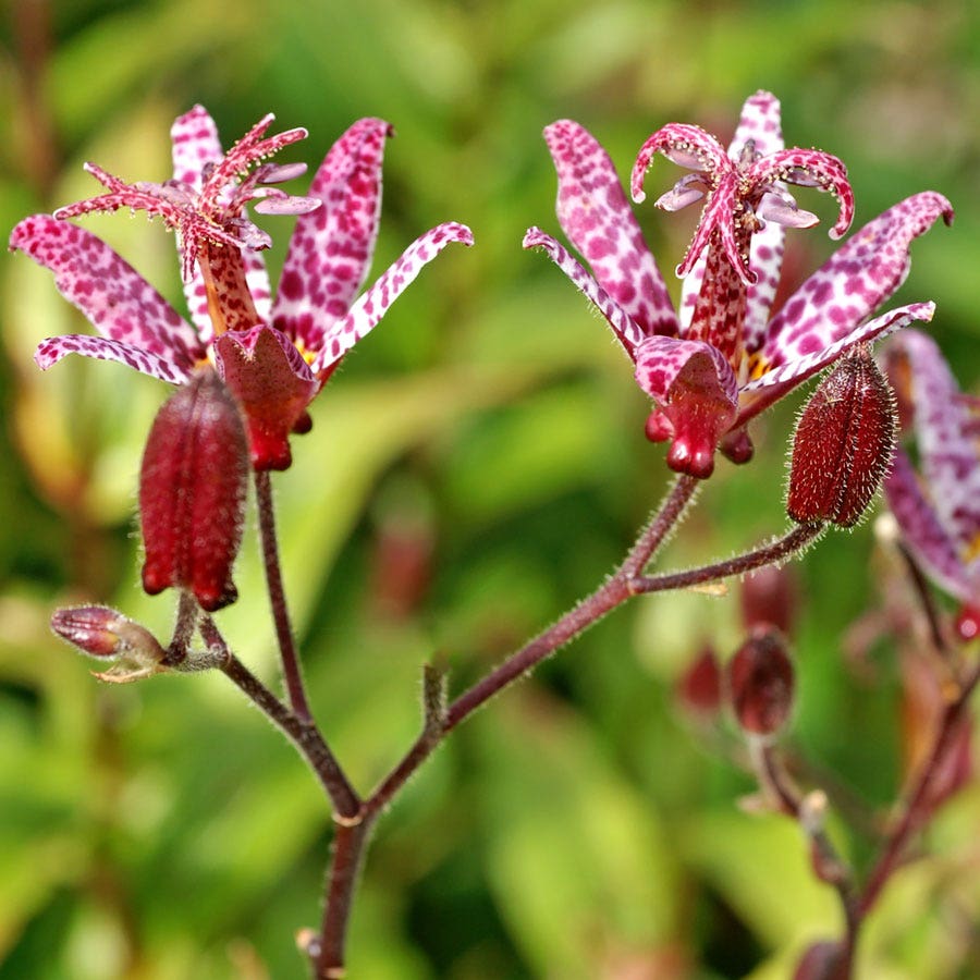This toad lily thrives in partial shade, but is quite happy in punishing heat and humidity, provided it gets adequate water during dry spells. A rapid colonizer, it will soon be offering dozens and then hundreds of blooms from your original planting. Reaching 18 to 30 inches tall and about 12 to 24 inches wide, 'Empress' fills space quickly, making it a great choice for a ground cover as well as an accent planting on the patio or in the border. Terrific in containers, too, where you can enjoy the exquisite detailing of the blooms up close.