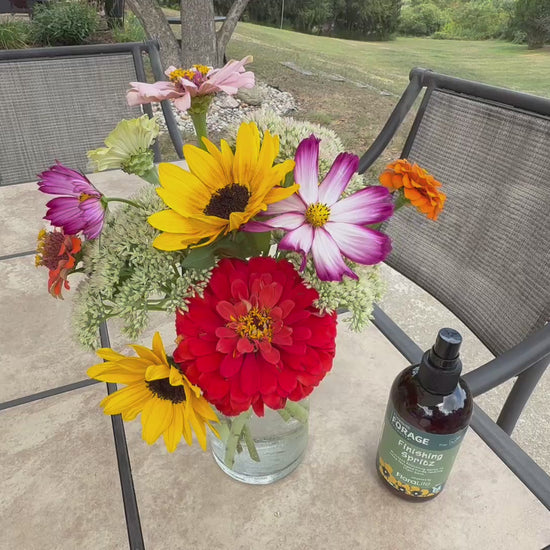 After hydrating and feeding your flowers, lightly mist the petals and foliage with Finishing Spritz. Hold the bottle 8 to 12 inches away and spray in a sweeping motion for even coverage. Use as the final step before displaying arrangements or delivering bouquets.Safe for use on a wide range of flowersincluding roses, zinnias, eucalyptus, and more. Finishing Spritz helps extend visual freshness and adds a subtle sheen without residue or damage. Ideal for indoor displays, special events, or anytime you want your flowers to look their best.