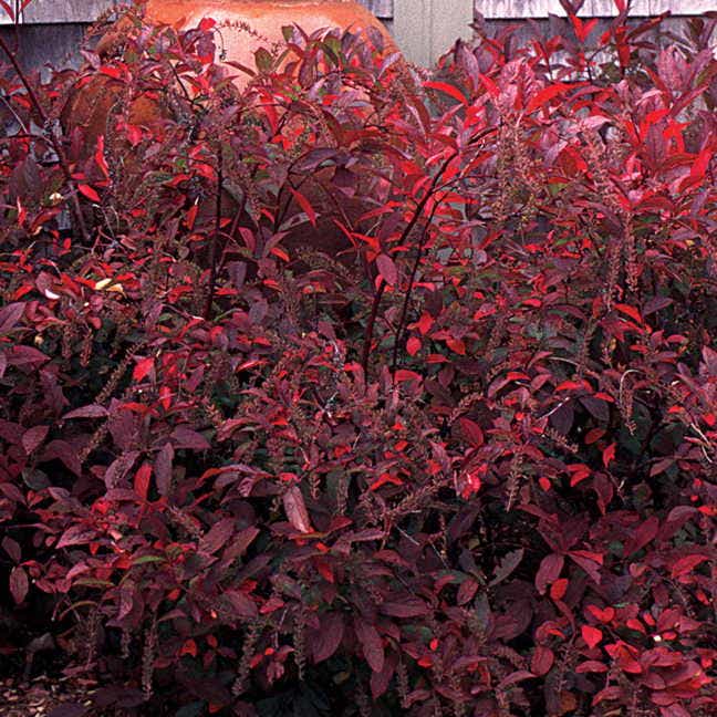 Looking at 'Henry's Garnet' Sweetspire in spring or summer, you can admire its sweet fragrance and lovely cascading blooms against fresh green foliage, but you might wonder why on earth it has "garnet" in its name. Not until the cool weather of autumn arrives and every leaf turns a sizzling shade of rosy-pink to red will you realize that while you've been enjoying the beauty of this shrub for months, you've actually been seeing it "offseason"! Now that's multi-season appeal!