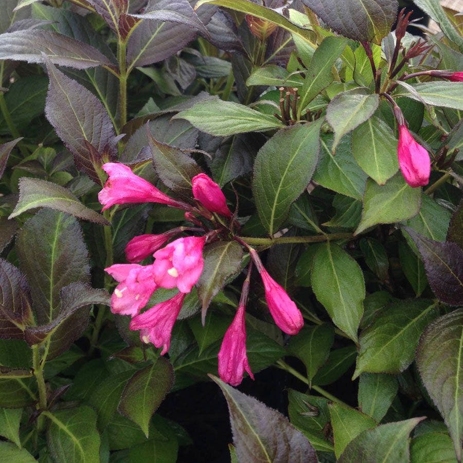 Expect Minor Black to reach just 18 to 24 inches high and to spread perhaps 24 to 36 inches wide. Made for small spaces, it would also be a lovely choice as a repeated accent throughout the border or foundation, perhaps interspersed with an evergreen groundcover shrub or perennial that could take over the focus in late fall and winter, when this weigela has gone bare. Of course, it is also a splendid companion to butterfly- and hummingbird-attracting flowering perennials from achillea to salvia.