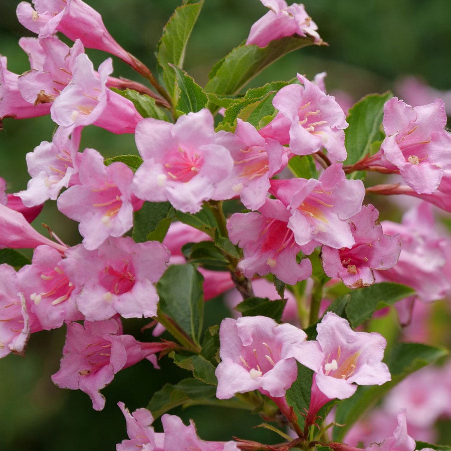 A Proven Winners® ColorChoice® Flowering Shrubs variety, Weigela Sonic Bloom® Pure Pink is a deciduous perennial shrub offering spring through fall interest, blooming late spring to early summer with a second bloom in the fall. This dense and bushy plant is free flowering, setting tubular, two-toned pink blooms that attract pollinators to the garden.