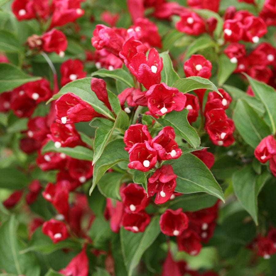 A Proven Winners® ColorChoice® Flowering Shrubs variety, Sonic Bloom® Red is an incredibly prolific reblooming Weigela, beginning the season with a heavy flush in late spring and then continuing all summer and fall. Welcome to the new millennium in weigela breeding! There's never been anything like it, and you will absolutely love it for nonstop 3-season color in the sunny garden.