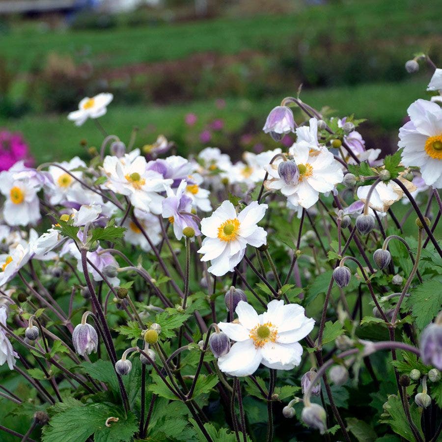 Elegant semi-double blooms, handsome foliage, and easy to care for - what's not to like about the Anemone Dreaming Swan™? In the garden it attracts butterflies with its tempting golden centers while spurning the advances of deer and rabbits. Indoors its sits pretty in vases on slender yet reliable stems. Anemone Dreaming Swan™ boasts bigger blooms than 'Ruffled' and a longer bloom time than most. It is easy to naturalize in just about any soil type, including salt tolerant, and very worry free overall. If only all beauty could be as easy to maintain as windflowers!