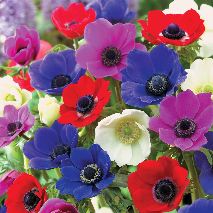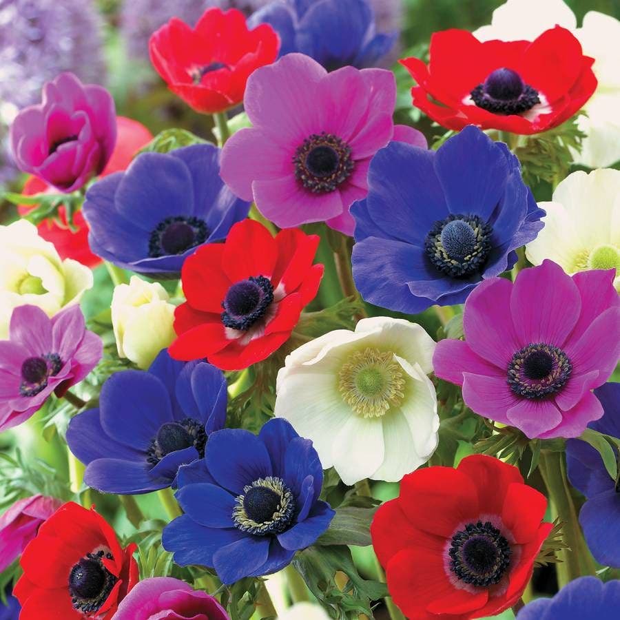 These 2-inch blooms are simply drenched with color, arising on 12- to 18-inch stems just perfect for cutting. In the garden or vase, De Caen Poppy Anemone Bulbs are long-lasting and lovely, arising in shades of bright red, bubblegum pink, azure blue, and clean white, plus interesting bicolors and combinations. What a nice alternative to yellow Daffodils for the spring garden!