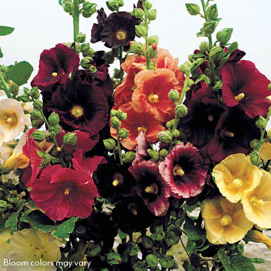 Dug out of an old Vermont barnyard many years ago and carefully crossed and re-crossed for bigger, bolder blooms (and to eliminate rust, the enemy of Hollyhocks everywhere), this delightful Old Barnyard Hollyhock Mix captures the joy of the old-fashioned cottage garden. These blooms look like Grandma's might have: single-flowered in dark, rich colors you just can't find in today's newer varieties.