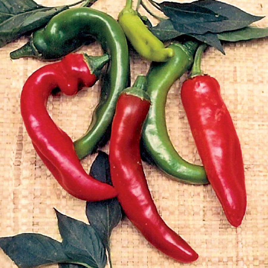 An old favorite with unparalleled taste, Anaheim TMR has been the choice of gardeners for generations. Relatively mild at just 3200 Scovilles, these peppers measure 8 inches long and 2½ inches wide. They arise on sturdy 28- to 34-inch plants, which offer great foliage protection for the growing fruit.