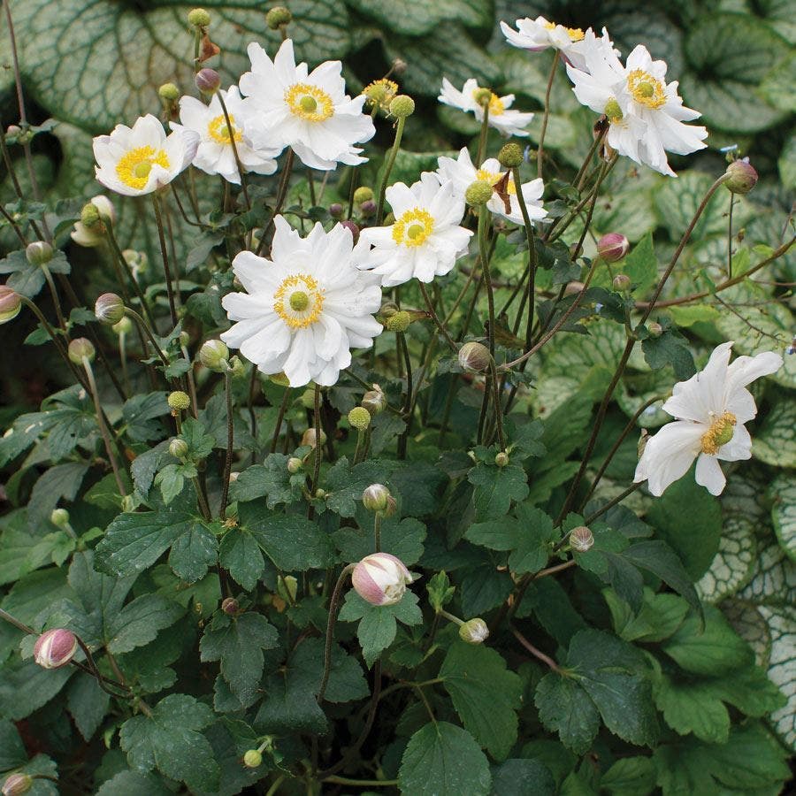 Anemone Fantasy™ Snow Angel is a perennial offering late-season interest, just as other plants are beginning to fade. With a long blooming season, the plant flowers heavily in a flurry of bright white poppylike flowers with a yellow "button" of stamens in late summer into early autumn, attracting butterflies.