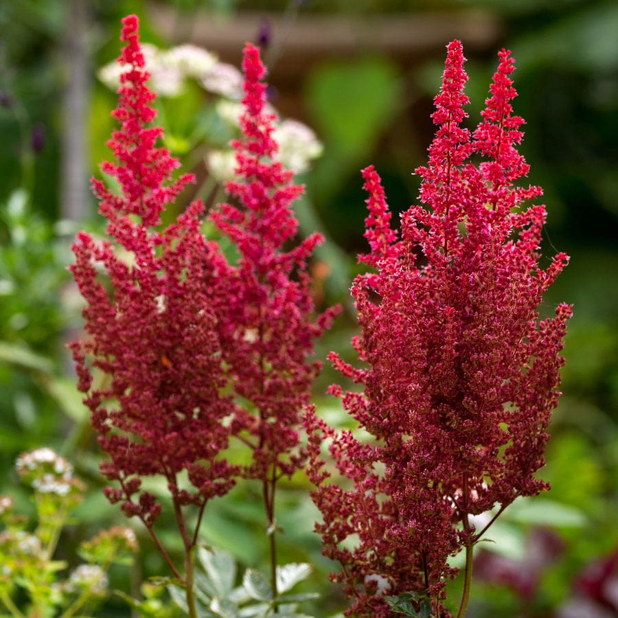 An Astilbe x arendsii hybrid, commonly known as astilbe or false spirea, 'Red Cattleya' boasts gradually spreads through rhizomes and grows into a tall, upright, clump-forming plant. While it shines when grouped or massed in mixed beds and borders and is particularly well-suited to shade gardens and along water features, its versatility extends to being equally impactful as a specimen or container plant.