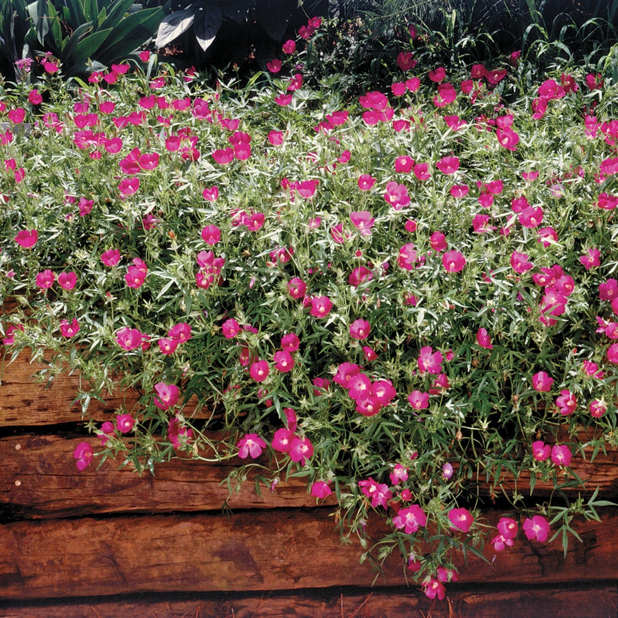 Callirhoe is a native perennial, forming a dense mat of deep green that chokes out weeds, helps retain soil moisture, and blankets bare soil. It is untroubled by most pests and diseases, and will scramble across dry spaces, cascade over a wall, and otherwise fill the landscape with carefree color. Do not miss the opportunity to show off this lovely and very low-maintenance plant. Zones 4-9.