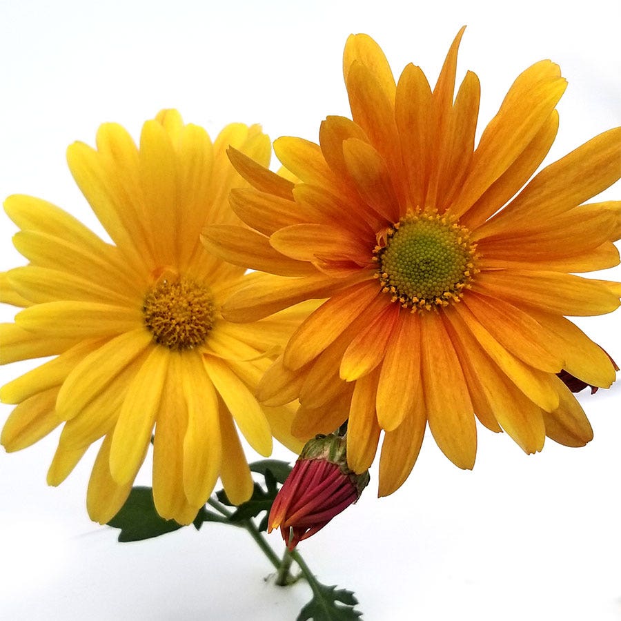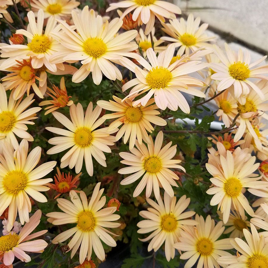 Are you looking for gorgeous color for your fall and winter garden? Look no further than Chrysanthemum 'Brandywine Sunset'. These stunning flowers have bold yellow centers that fade into pale cream at the tips of the petals all contrasted against bold green foliage. It's colors are most vibrant in the cooler temperatures. So as your landscape cools off these blooms heat up. Besides being beautiful these are also deer resistant and will bring your pollinators flocking! Butterflies and bees love them. Chrysanthemums bloom late in the summer season and sometimes even into the winter depending on your zone. They also look great in a bed, border, or even as cut flowers. Add these yellow peach blooms to your landscape today for a bloom that no one will be able to resist.
