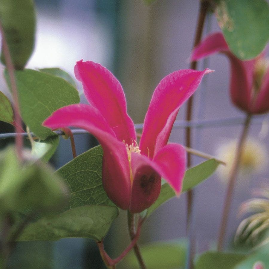 Princess Diana comes by its vigorous growth and beautiful looks honestly. It is a selection of a species -- C. texensis -- known for its thick, leathery flower petals and groundcover habit. The species sets scarlet blooms, but Princess Diana is the result of many crosses, including in its parentage the classic blue variety Jackmanii. The flowers are 2 to 2½ inches high, retaining the C. texensis tulip shape and durable texture but brilliantly colored in new shades!
