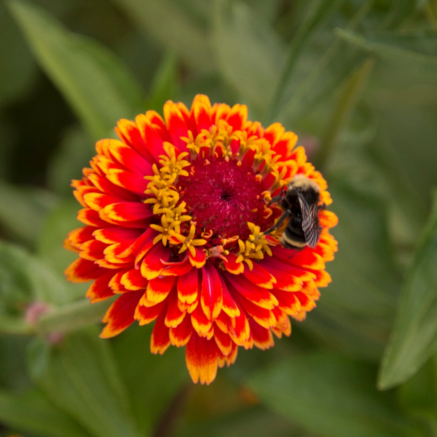 These 3-inch blooms are gorgeous and long-lasting. Crouching Tiger Zinnia sports deep red petals tipped in yellow, so the new blooms are nicely bicolored, while the fully double mature blooms have only peekaboo streaks of red visible among the froth of yellow tips. You'll love how the look and color pattern changes with each day of bloomand you can cut the flowers at any stage to preserve your favorite "look" for the vase.