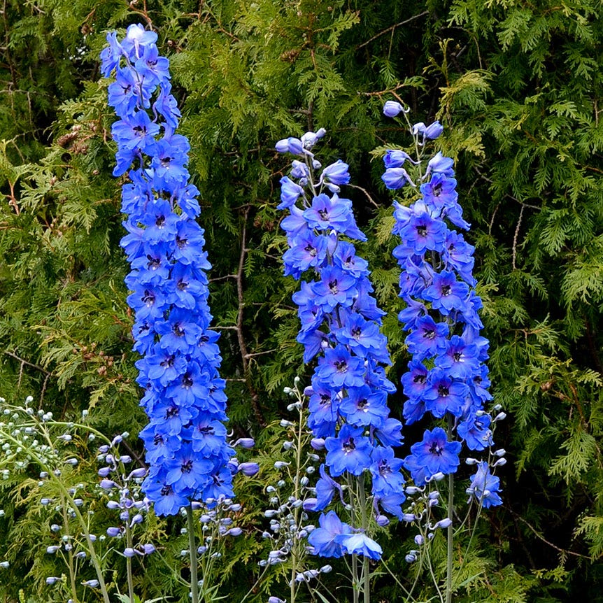 Nothing does vertical interest quite like Delphinium, and Million Dollar Blue really lives up to its name! It sets out sturdy spears covered in true blue semi-double blossoms beginning in early summer and ending in early fall. This Delphinium boasts dark green foliage which does well to compliment its flowers, making that vivid azure blue really 'POP'!
