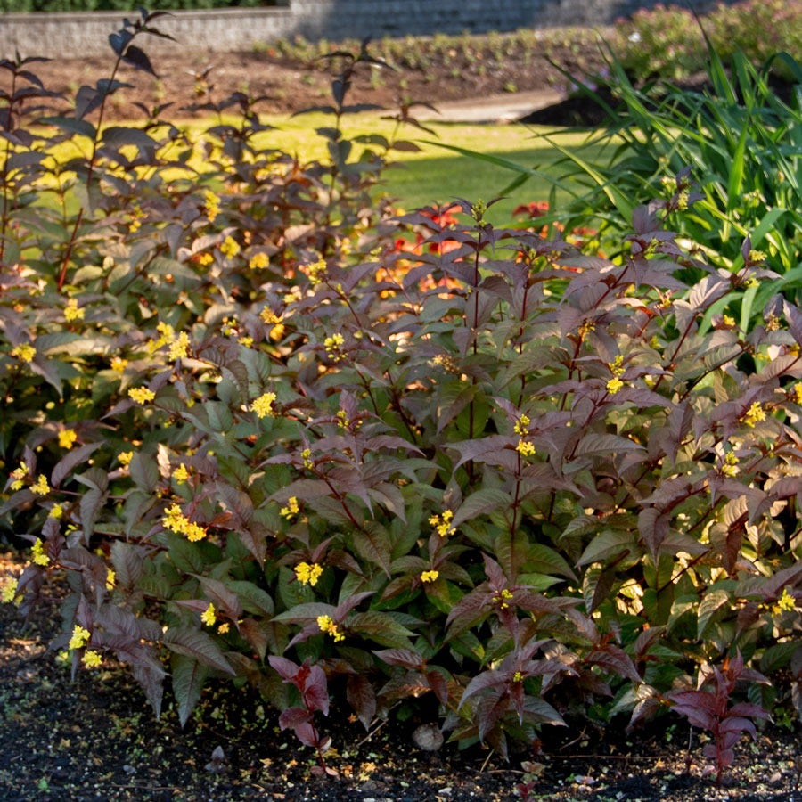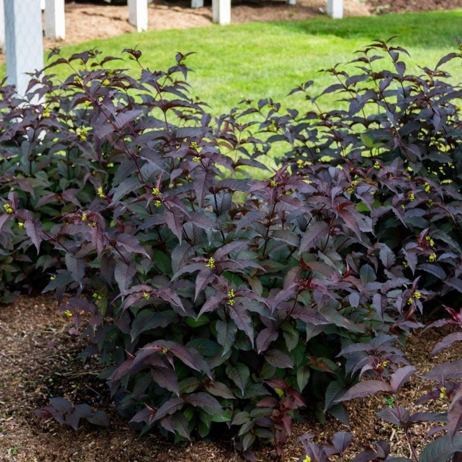 The dark burgundy plum foliage and bright yellow flowers of this bush proves once and for all that opposites really do attract. From spring into fall this beauty sets our little blossoms that are warmly yellow as a harvest moon. Butterflies and bees adore the flowers almost as much as gardeners appreciate its richly colorful foliage. The shades of chocolate, maroon, and deep purple really stand out in a sea of greenery and the colors become even more intense as the season fades. Best of all this perennial is native to the US so not only will it attract native pollinators, but it won't run amok like many invasive species out there. Along with its good looks and tame personality, this diervilla is also quite deer-resistant and tolerant of dry terrain and dense clay soil. Grow this gorgeous and tough-as-nails plant and you're sure to be impressed year after year.