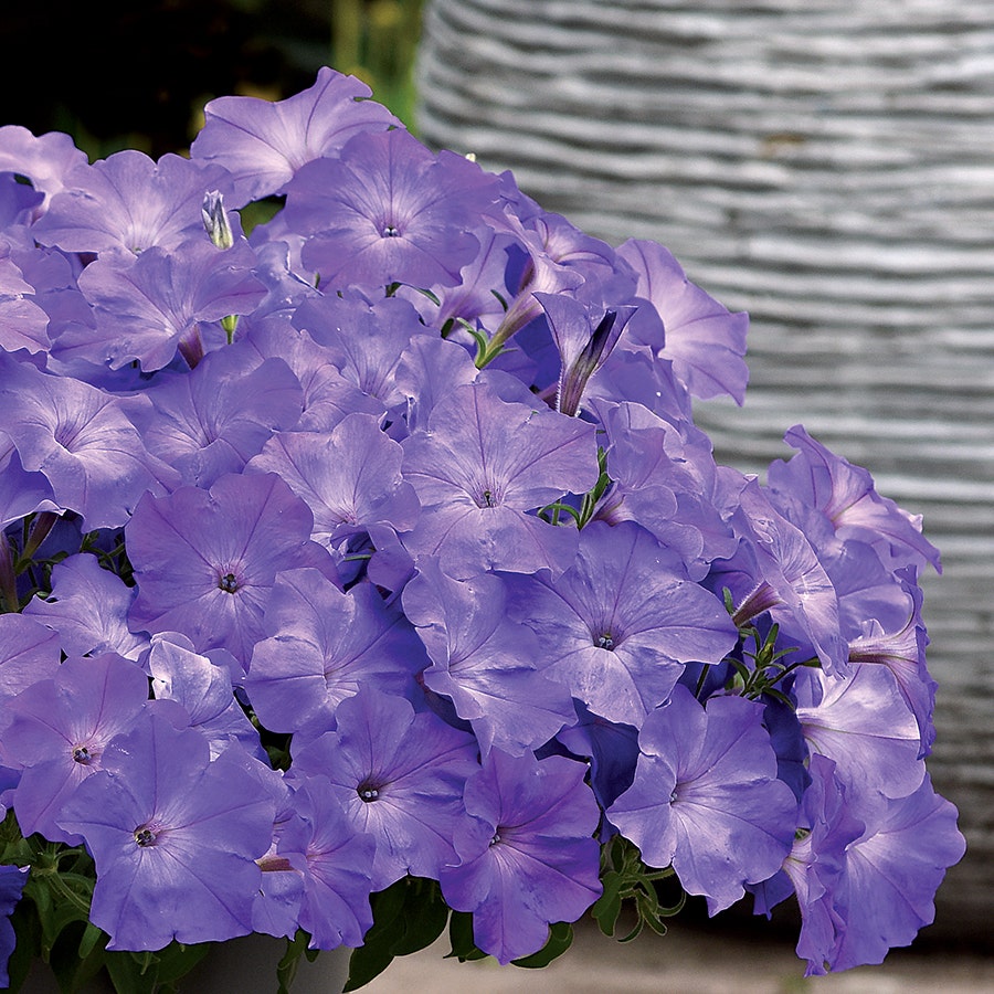 Petunia Wave® has taken the gardening world by storm since its introduction a few years ago. Its spreading habit is just stunning, covering ground at the rate of several inches every single day, and trailing lots of big, colorful blooms as it goes. Easy Wave® Lavender Sky Blue Petunia doesn't reach quite as far as the older Waves, but it stands up "taller," offering a more manageable and attractive shape for hanging baskets, window boxes, and flowerpots of all kinds.