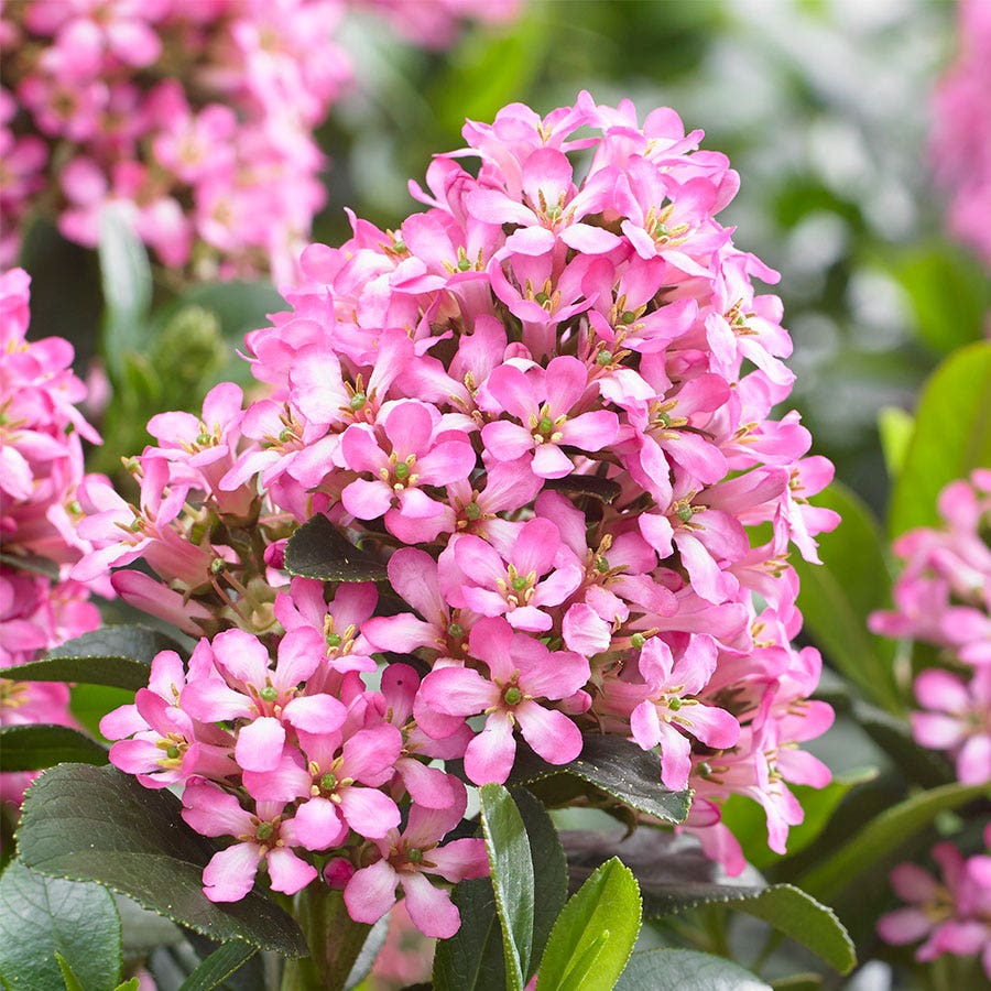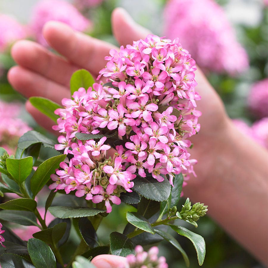 'Lades' Pink Elle is an incredible new selection of the reliable and easy to care for Escallonia. It is a lovely compact shrub that combines glossy evergreen foliage with months of summer and autumn color. The blooms are large and bursting with pink flowers. Producing clusters of candy pink flowers in early summer, often reblooming well in autumn, ?Pink Elle? is ideal for forming a decorative low hedge or filling in gaps and in beds and borders with its barrage of flowers contrasting against year-round evergreen foliage.It will remain compact and produces a nice even bush, perfect for larger pots that can be placed around the patio. A brilliant flowering shrub, its flowers are very attractive to pollinators which will not only bring your garden to life with the buzz of bees, butterflies and other beneficial insects but will help with the performance of other plants in the garden. Easy to care for, tough and very rewarding, ?Pink Elle? is an RHS 'Perfect for Pollinators' plants and a great new introduction to the Escallonia family!