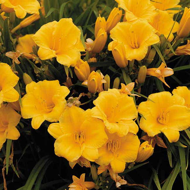 For sheer bloom power and beautiful color, no Daylily surpasses everblooming 'Stella de Oro'! Often the first to begin the Daylily season and the last to end it, Stella blooms for months on end on compact plants 2 feet high and wide.