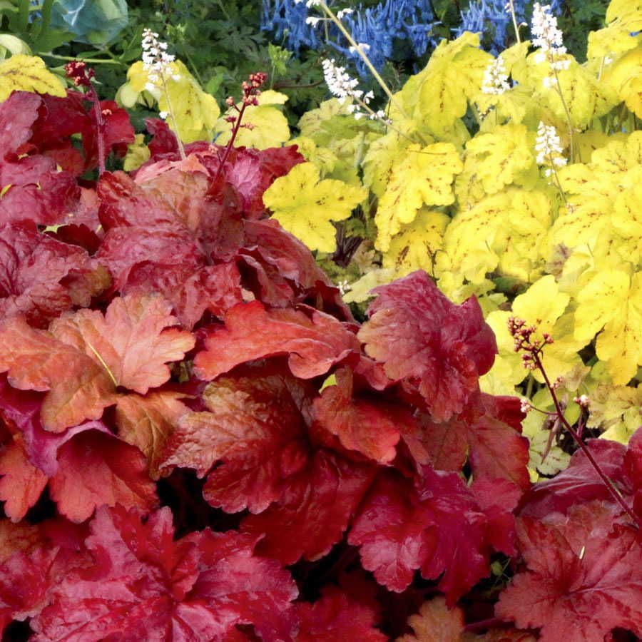 Fire Alarm offers some of the hottest red leaves you will ever lay eyes on, and it does so practically all year long. This new Heuchera from master plantsman Dan Heims outperforms all other Heuchera with searing red tones, brightest in spring and fall but persisting through summer and, in mild climates, even into winter.