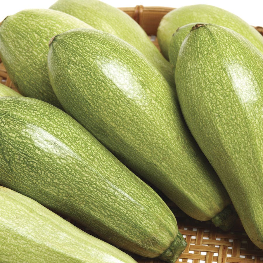 Magda hybrid begins to mature in early summer, just 50 days from sowing. The fruit is shorter and much plumper than zucchini, with a creamy green skin and pure white interior. Scrumptious fresh or cooked, it makes a hearty meal, and is so strongly flavored that you can enjoy it plain, sprinkled with a bit of salt, or as a meat substitute in sauces.