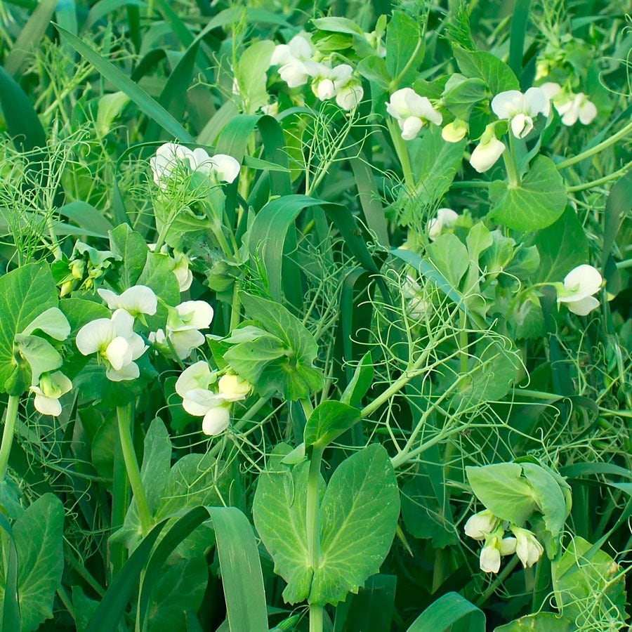 A dynamic duo, peas are nitrogen fixers that put nitrogen back into the soil, and oats act as support stock for the peas to climb and, once decomposed, become organic matter, or "green manure," which increases nutrients in the soilreducing the need for fertilizersand improves nutrient delivery as well as moisture retention and drainage.