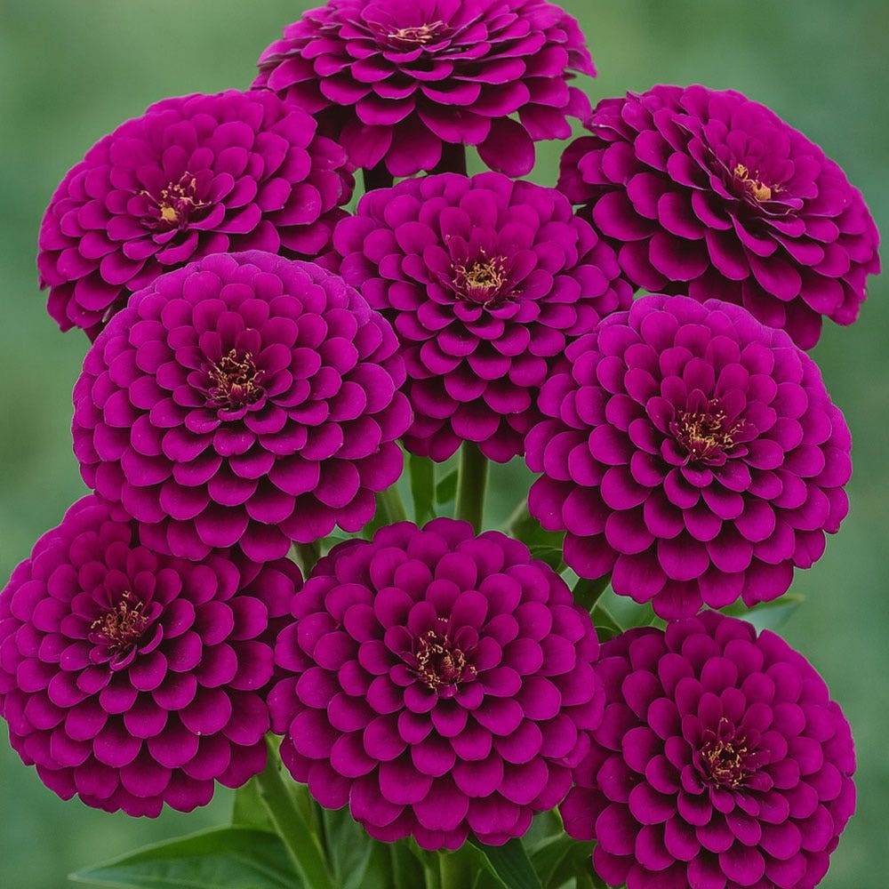 Royal Purple offers stunning dahlia-flowered blooms at the end of very long, strong stems. The waxy, tightly-packed petals create a pompon bloom that is almost incredibly full, dotted by a cheerful greenish-yellow central eye. These tall, bushy Park's Picks Purple Zinnia plants just keep producing all season long. Plants reach about 39 inches high in the garden. Perfect for the vase, these blooms last and last. No wonder they're a Park Seed Picks.