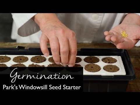 This easy-to-use seed starting kit includes a Jiffy Windowsill Greenhouse, 12 Jiffy-7 disks, and four packets of colorful flower seeds.