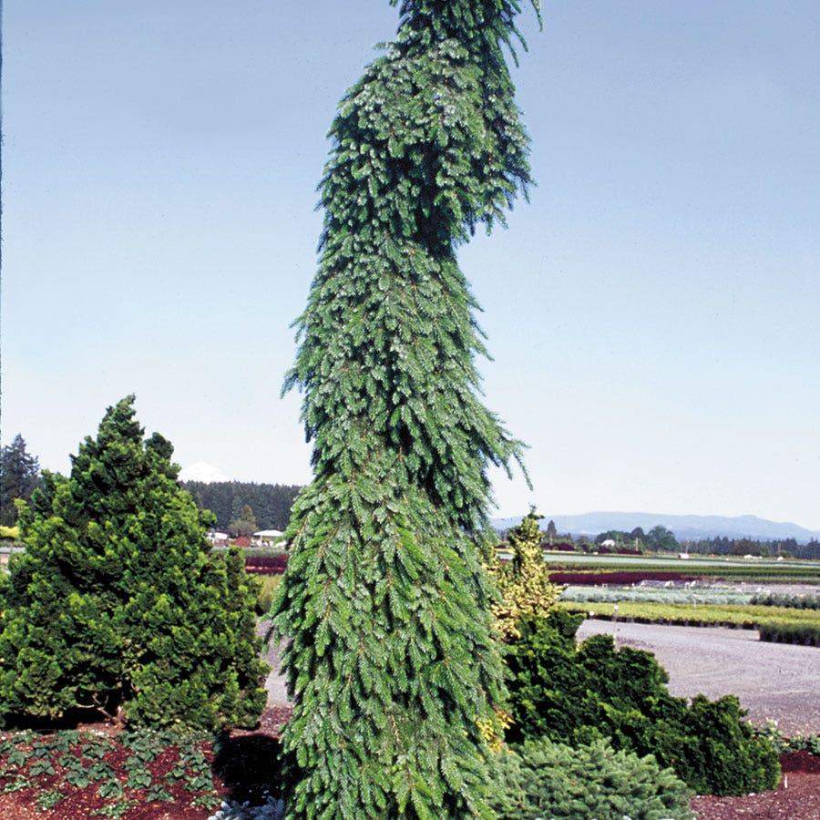 Pendula is a highly attractive tree that certainly lives up to its name. The branches swing so low that they're almost parallel with the trunk! Each branch is positively packed with dense dusky green needles, giving the entire tree a very soft elegant look. The tall narrow habit is quite striking and definitely commands attention from onlookers near and far. It is noted for its rapid growth can reach heights up to 20 to 30 feet! The primary branches are upturned slightly while secondary branches hang loosely as the tree matures. Branches are filled with spirally-arranged, four-sided, needle-like, dark green leaves. This dapper deer-resistant tree is easy to grow and is a great choice your landscape. This lovely evergreen is easy to care for and is great for privacy and ornamental interest in your garden!
