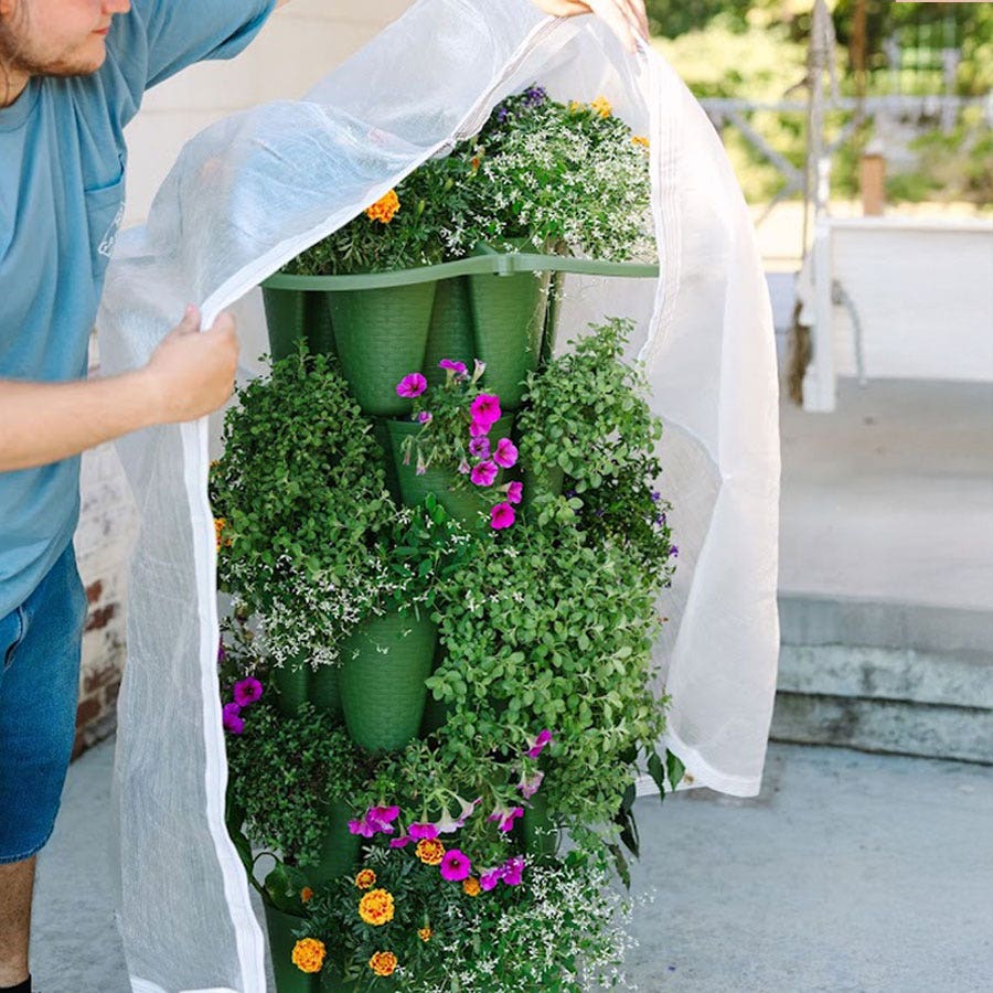 Protect your GreenStalk Vertical Garden Planter or GreenStalk Complete Vertical Garden from sudden cold snaps with the GreenStalk Frost Protection Cover. Made from durable, woven polypropylene material, this breathable cover helps retain up to 8 extra degrees of warmth while still allowing 68% of sunlight to reach your plants. In addition to shielding plants from frost, it can also provide relief from intense summer sun, helping to prevent scorching.