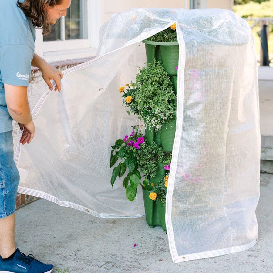 For the best results, pair the GreenStalk Frost Protection Cover with at least one GreenStalk Plant Support (sold separately) to keep the fabric elevated and away from delicate leaves. This versatile cover can also be used to protect shrubs and small trees during colder months.