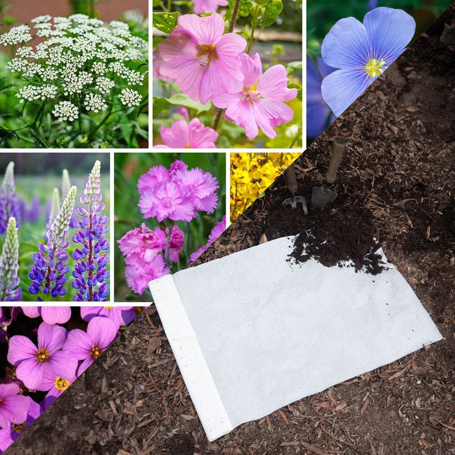 Our perennial seed mats are designed with convenience in mind, featuring seeds spaced at optimal distances and embedded between biodegradable tissue layers. This smart design ensures quick germination and even growth, preventing the common issues of seeds washing away or bunching up. The perennial flower seed mats dissolve quickly under watering, allowing for easy and effective planting.