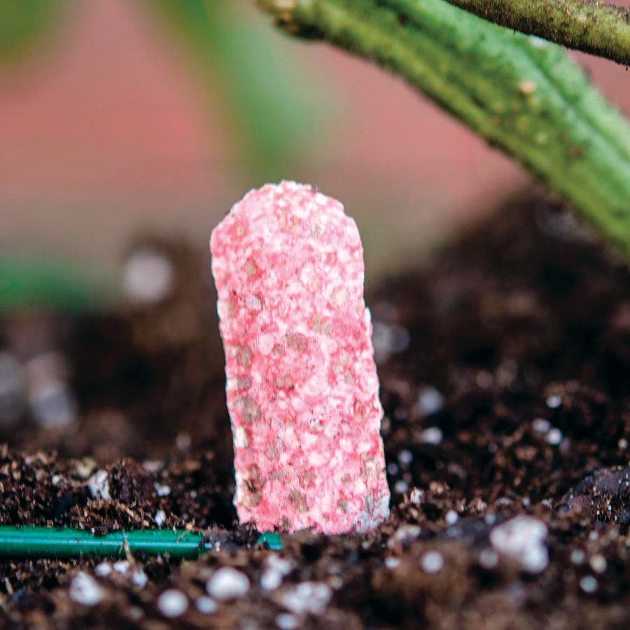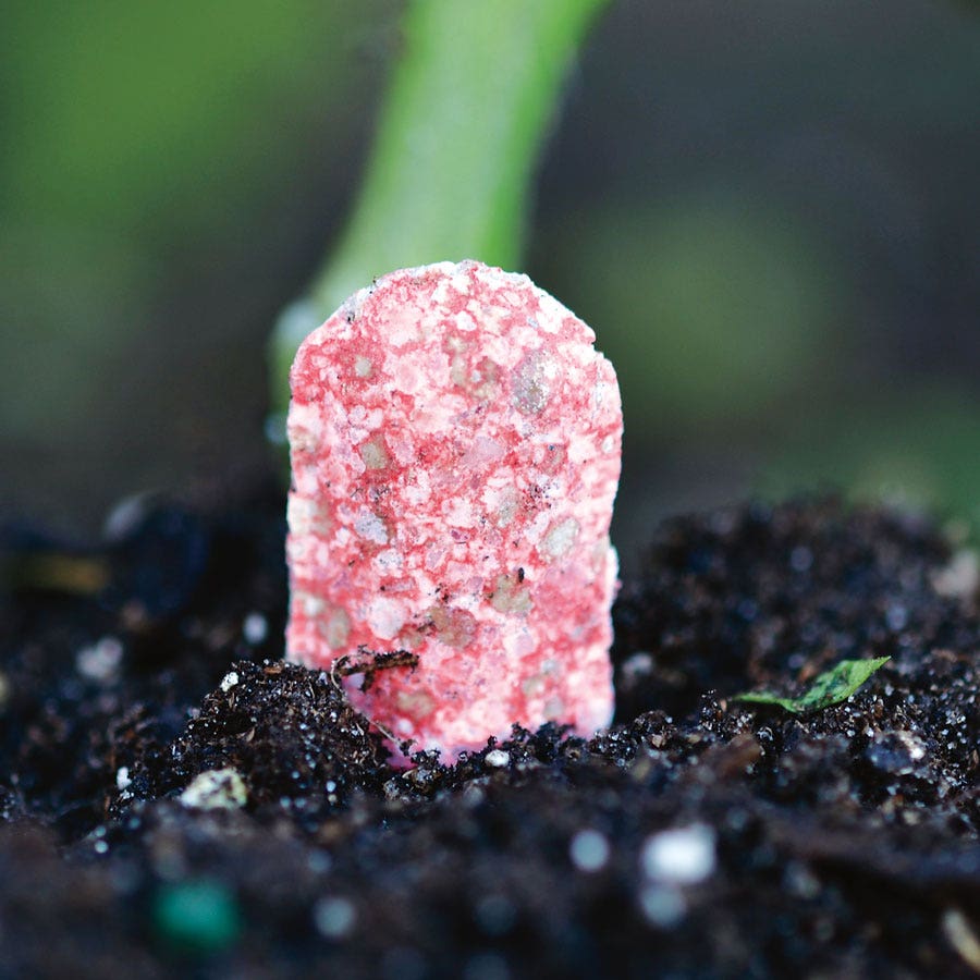 Each of these lozenge-shaped spikes contains a powerful NPK mix of 8-24-8, promoting heavy fruiting as well as good root growth and branching. Sink one into the soil as far as it will go on either side of your tomato plant (in a row of tomatoes, the spikes will feed both plants adjacent to them). The spikes slowly dissolve, releasing the nutrients to be absorbed by your tomatoes' roots. Nothing could be simpler.