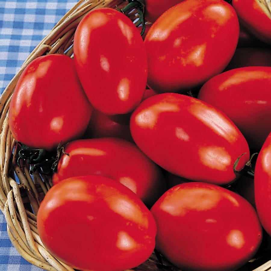 Tomato Supremo (10 seeds): A widely-adapted Roma tomato that grows well in warm, cool, and temperate climates. It sets its crop of extra-large plum tomatoes all at once, simplifying canning and saucing. Unbeatable disease resistance.